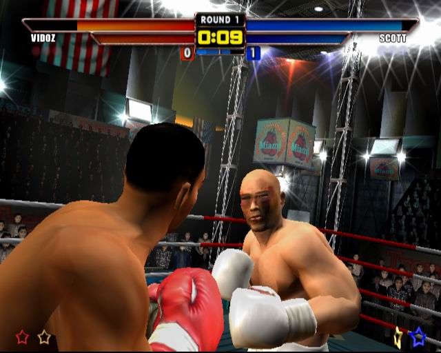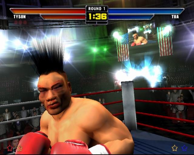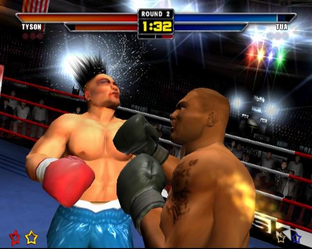 • The PandIN? (Polymorphic and Interpolative Node-mapping) facial damage engine delivers the most brutal boxing experience ever. As the fight progresses players faces get more and more bruised and bloody, if the damage gets too bad then the ref will check the guys face, if it starts to get horrific, with blood flying everywhere whenever he is hit, then the ref will soon stop the fight. Similarly if a player throws too many illegal blows he will be warned and eventually disqualified by the referee.